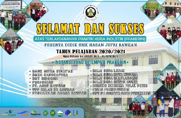 assalamualaikum warahmatullahi wabarakatuh, Alhamdulillah telah Terlaksananya Praktis Kerja Industri (PRAKERIN) peseta didik SMK HASAN JUFRI BAWEAN tahun pelajaran 2020-2021, masa periode 04 Januari - 05 April 2021 ~In...